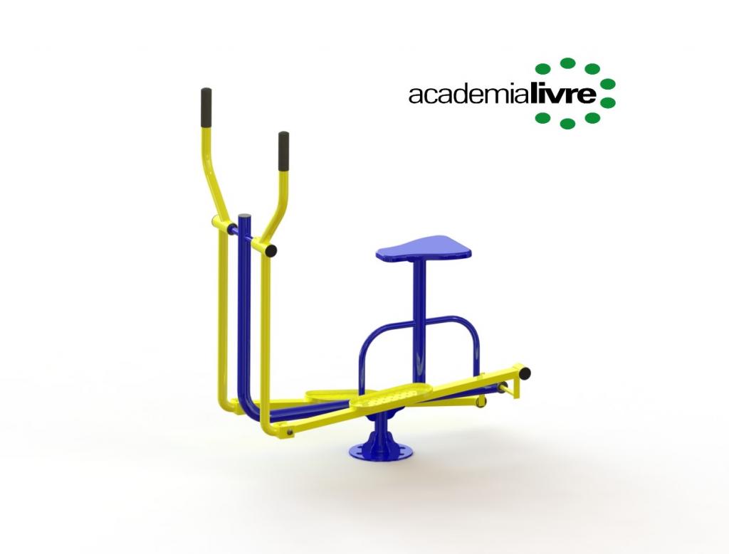 Este aparelho realiza trabalho aeróbico para aumentar o condicionamento físico e melhora da força, flexibilidade e mobilidade dos membros inferiores e superiores.