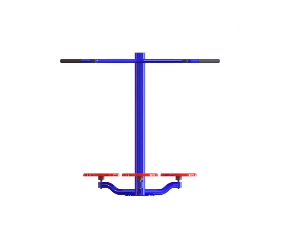 Este aparelho trabalha a flexibilidade, equilíbrio e coordenação dos membros inferiores, quadris e região lombar.